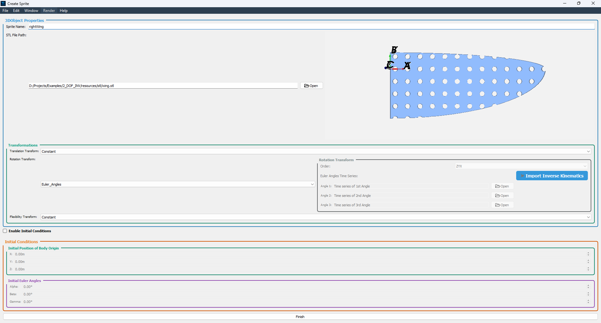 The computed Euler angle time series will then be automatically transferred to the Sprite Creator Window.