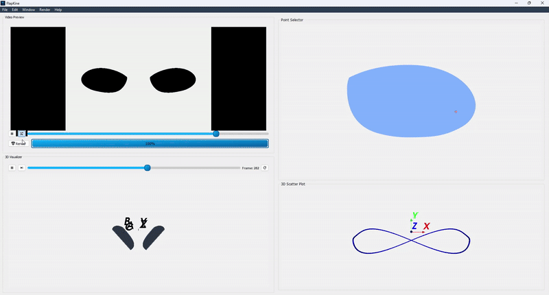 Figure: Rendered simulation preview after completing the scene setup and clicking the Render button in FlapKine.#