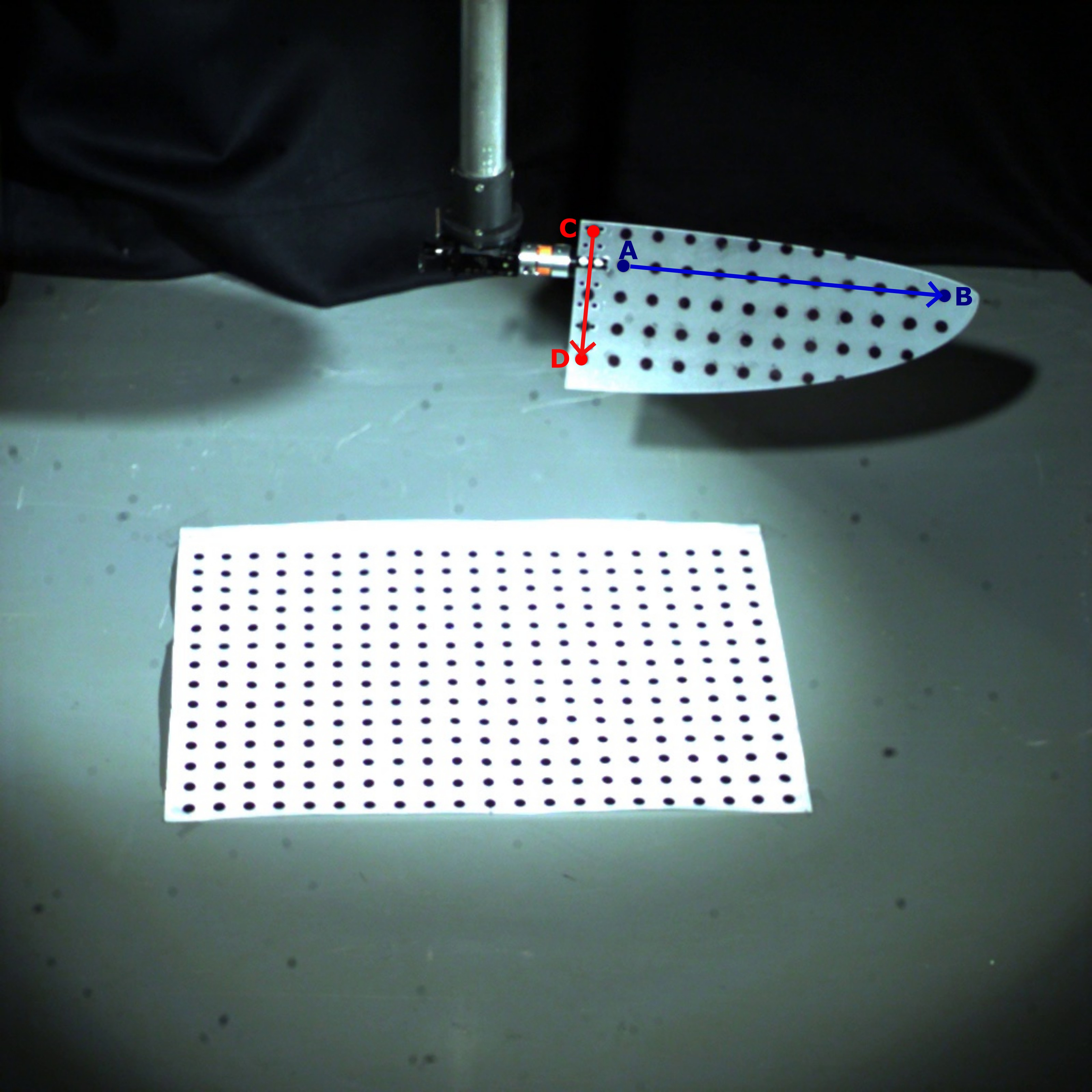 Points (pt1-4) correspond to the four markers (A–D) shown in the below image and processed in DLTdv.